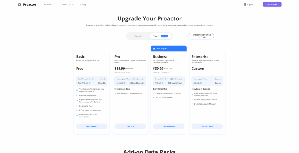 Pro Plan: $15.99/month — includes full access to AI Advice, To-do exports, cross-meeting recall